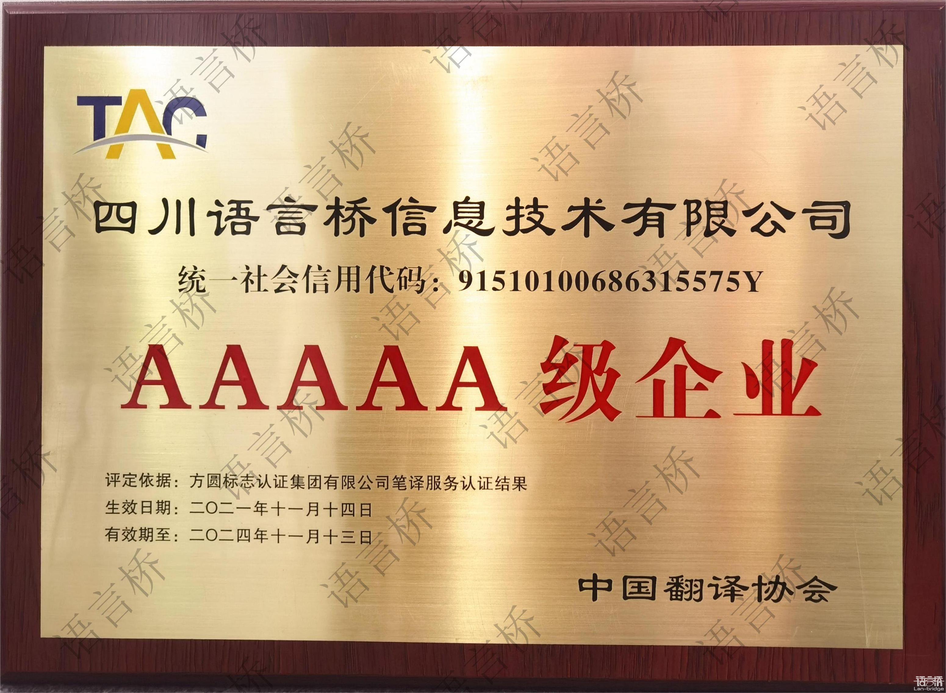 在翻譯服務(wù)企業(yè)認(rèn)證授牌儀式中,中國翻譯協(xié)會與方圓標(biāo)志認(rèn)證集團授予語言橋集團筆譯服務(wù)5A級企業(yè)服務(wù)認(rèn)證證書,語言橋集團董事長朱憲超出席授牌儀式。這一殊榮也是對語言橋在翻譯服務(wù)、質(zhì)量管理、人才建設(shè)、技術(shù)創(chuàng)新等方面取得的優(yōu)異成績的肯定與認(rèn)可。