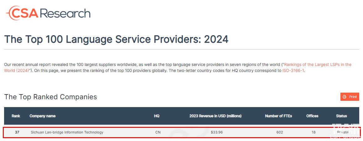 語言橋2024 CSA全球排名